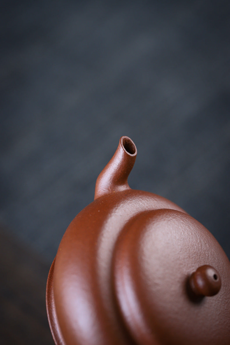 This handmade Yixing teapot is crafted from authentic Jiangpo clay (降坡泥) and features the elegant Flat Lantern (扁灯) shape, known for its low, wide form and excellent pouring balance. The thin-walled (薄胎) construction makes the teapot lightweight, highly responsive to temperature, and perfect for precision brewing.