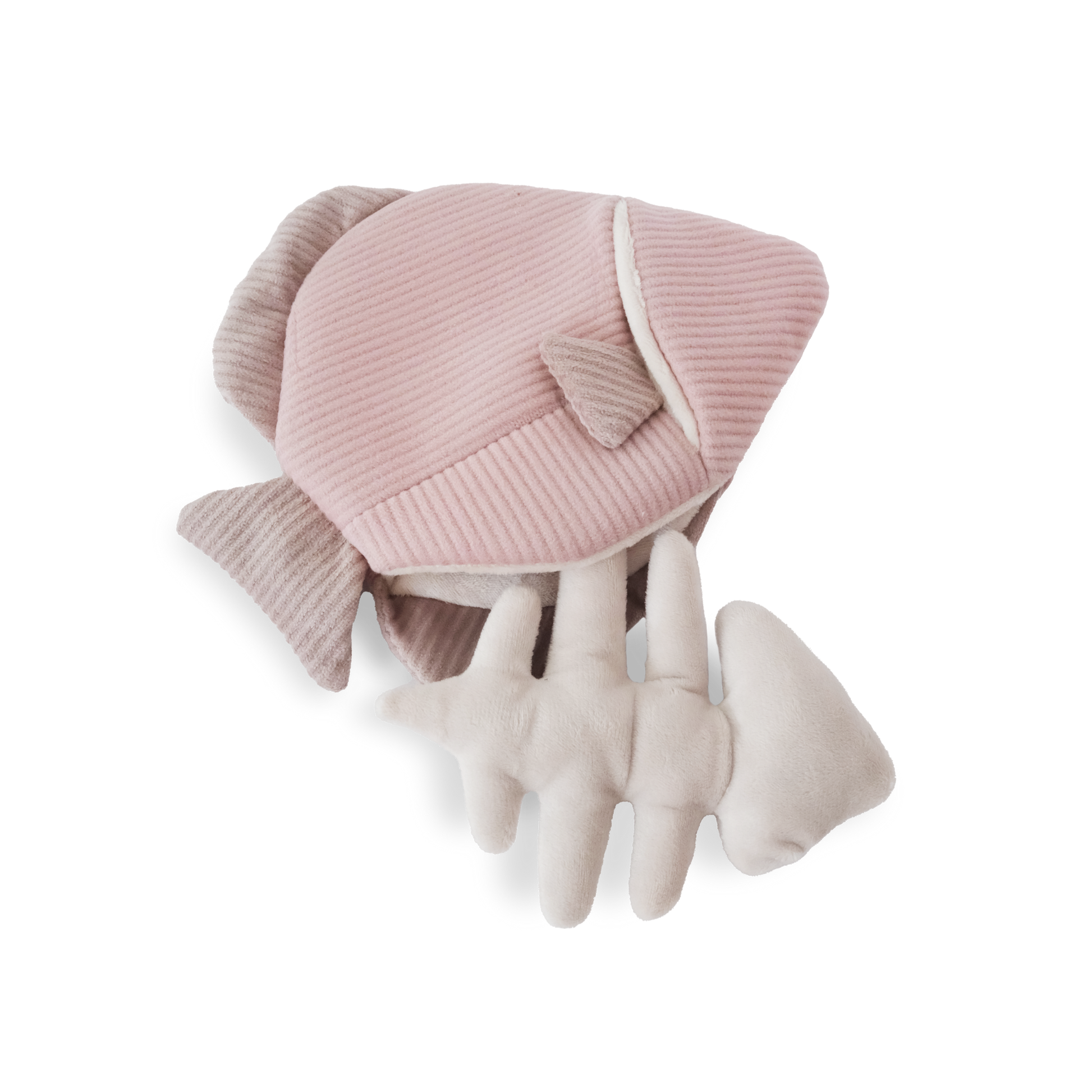 A step up! This toy offers a moderate challenge with tighter pockets and more complexity. ANGEL FISH is a 2-in-1 burrow and snuffle enrichment play object. Inside is one large squeaky fishbone for chewing and all the fins crinkles! There are multiple pockets for you to hide treats in. STIMULATING BURROWED BONE  Hide treats in the belly of the fish and stimulate them to get the fishbone out! ENRICHMENT POCKETS Hide treats in 2 small and one large pockets for nose work sessions!