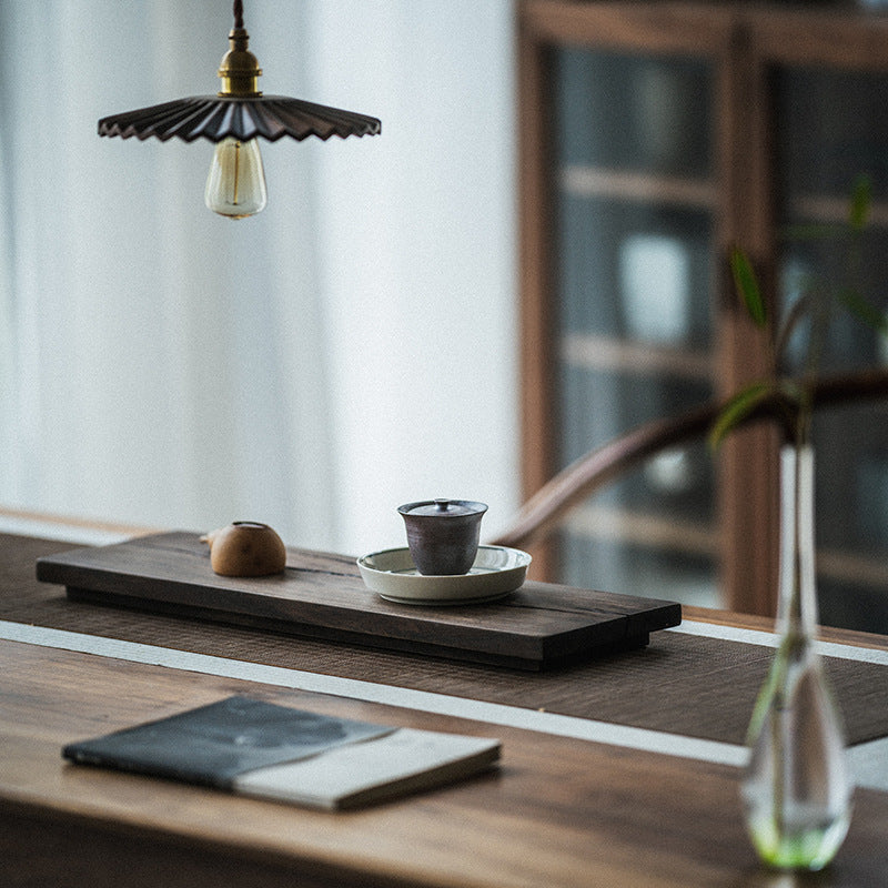 Meticulously proportioned at 56 x 18 x 3.5 cm, this refined Japanese-style Wabi-Sabi Black Sandalwood Serving Tray offers the perfect dimensions for an authentic tea experience, balancing elegant presentation with practical functionality.
