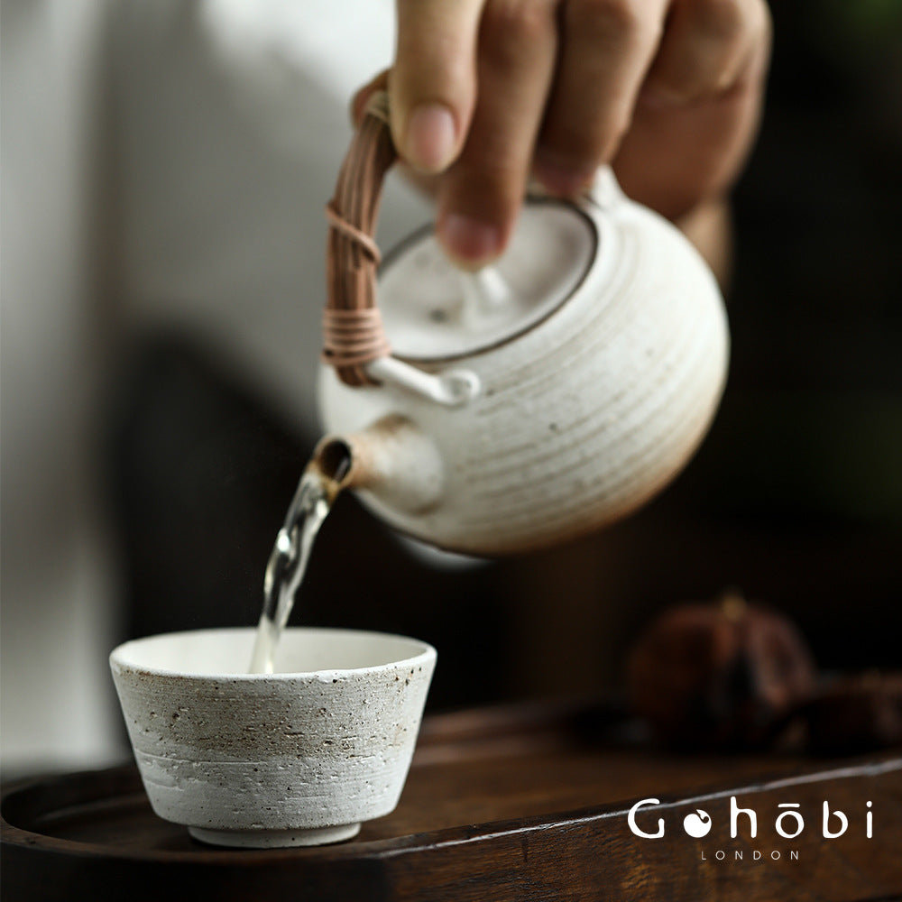 The Gohobi Insect-Eaten Shino Teapot is a pure handmade ceramic piece inspired by Japanese Shino ware and retro tea aesthetics. Featuring a beam-style handle and an intentionally irregular, humanistic form, this pot embraces the quiet beauty of imperfection.