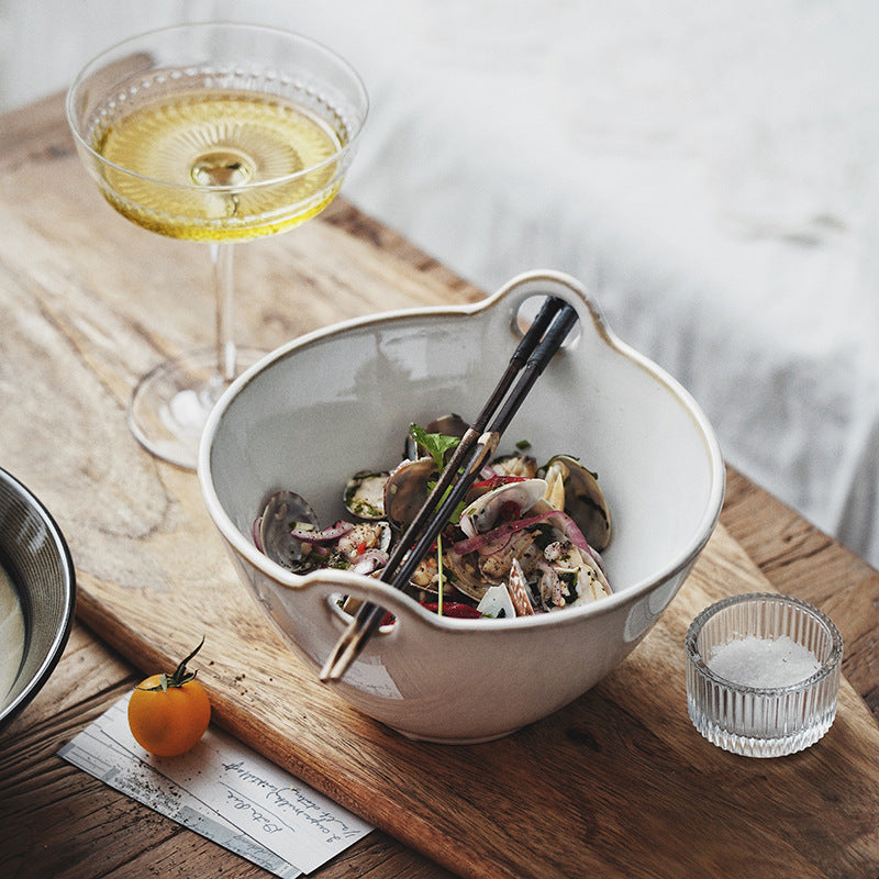 Gohobi Japanese Ceramic Double-Handled Bowl