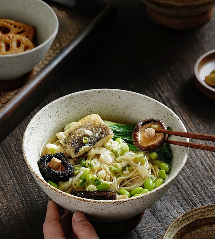 Its versatile size makes it suitable for rice, noodles, soups, desserts, or even as a serving bowl. The natural ceramic texture enhances the dining experience, bringing a warm and artisanal touch to both modern and traditional table settings.