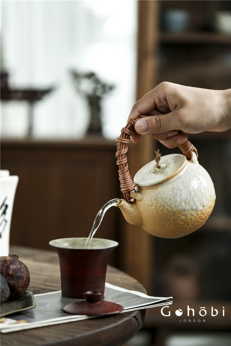 The Gohobi Kiln-Changed Glaze Teapot is a purely handmade ceramic piece crafted from refined white mud clay and fired at high temperature to achieve natural glaze transformation.