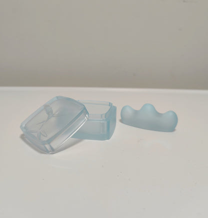 The name Pate de Verre is French for glass paste, and the technique involves creating a paste from powdered glass and colouring agents and filling a fire-proof mould with this paste then firing it in a furnace to melt the glass.