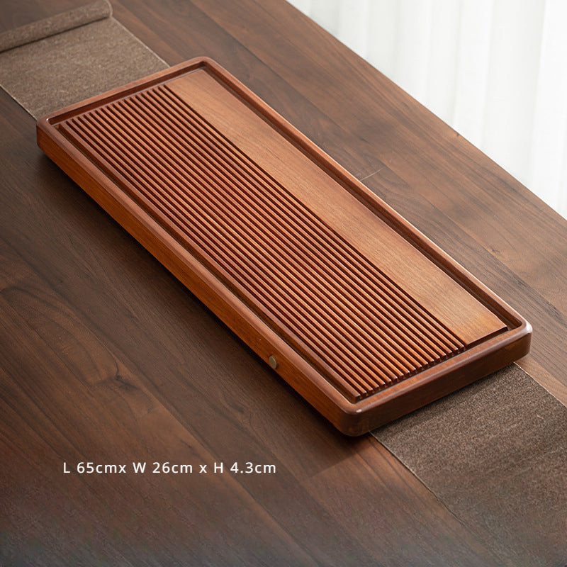 The spacious surface also doubles as a dry tea brewing tray, offering versatility for different tea-serving styles. Every tray is made from natural rosewood, with unique grain patterns that add to its character. If you'd like to view the exact piece before purchasing, please reach out for more details.
