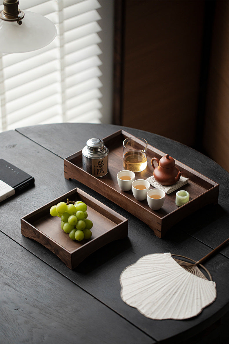 Expertly crafted from premium North American black walnut, this versatile tea tray accommodates both traditional tea ceremonies and contemporary serving needs. Designed for dry brewing methods, its solid wood construction provides stable pot support while offering elegant storage for your tea cups in a compact, space-efficient format.