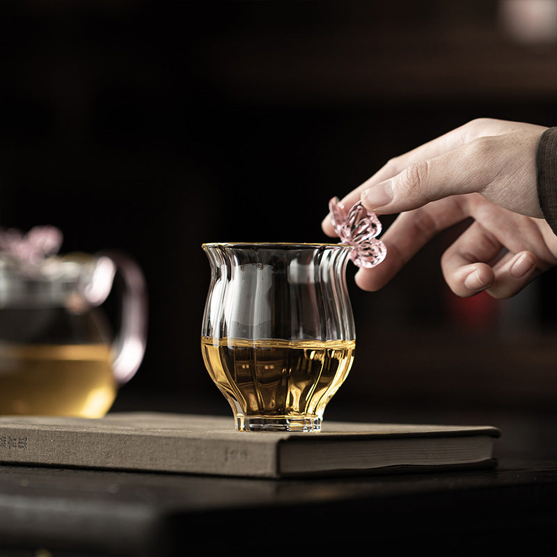 Gohobi Butterfly High Borosilicate Glass Tea Cup and Teapot Set – Heat-Resistant Transparent Gongfu Tea Set for Home and Office