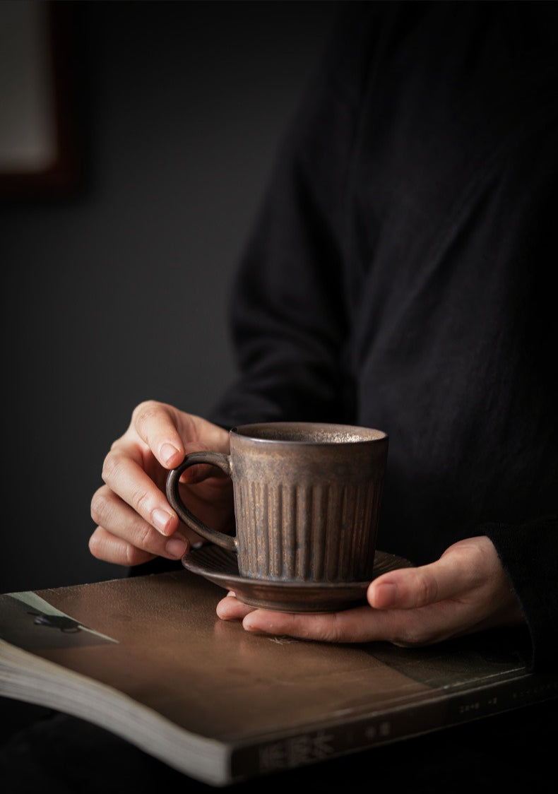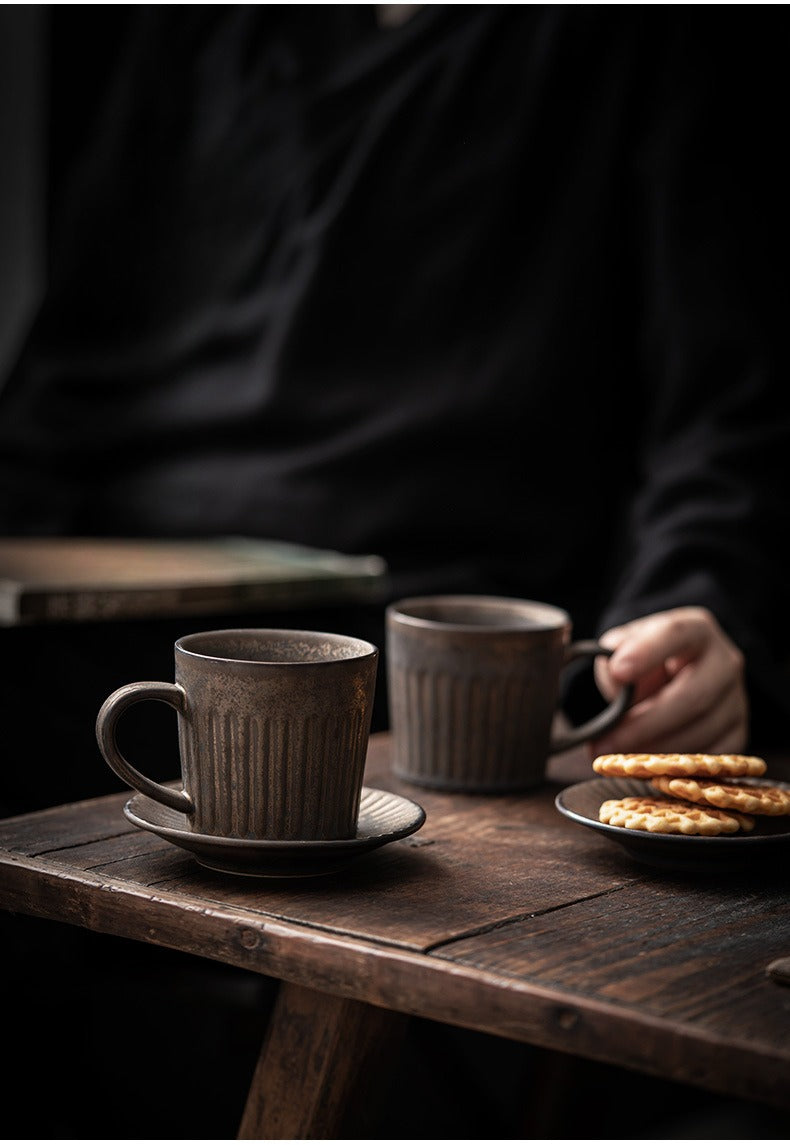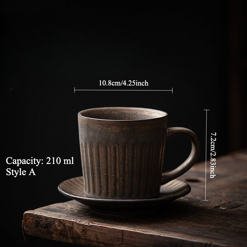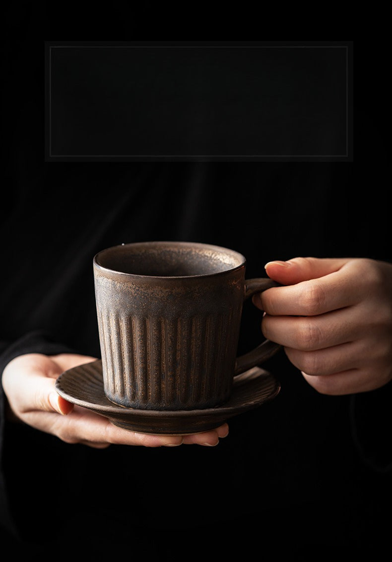 Perfect for tea, coffee, or milk, this versatile piece enhances both casual and formal settings. The sturdy coarse ceramic texture provides a tactile, grounded feel, while the matching saucer adds sophistication and functionality to your tableware collection.
