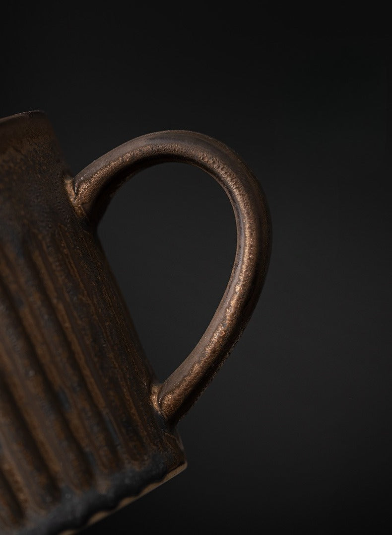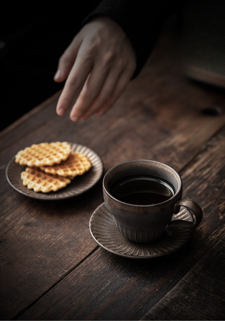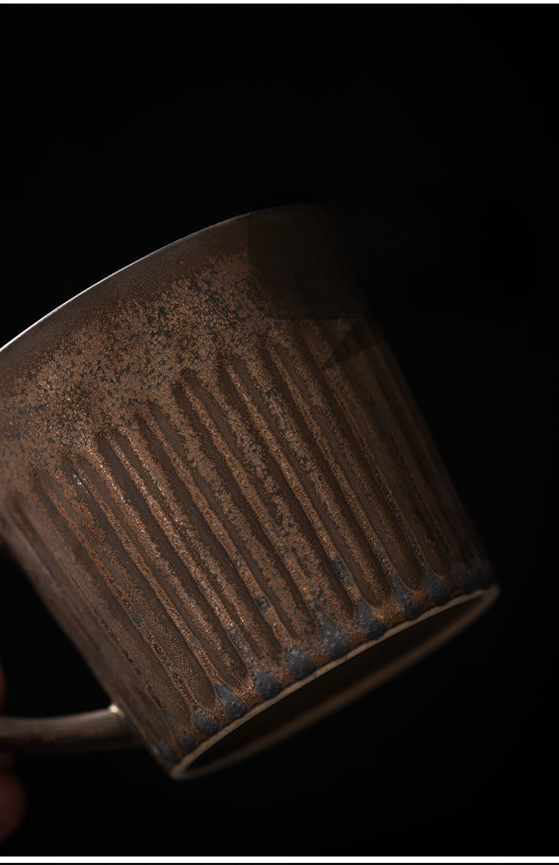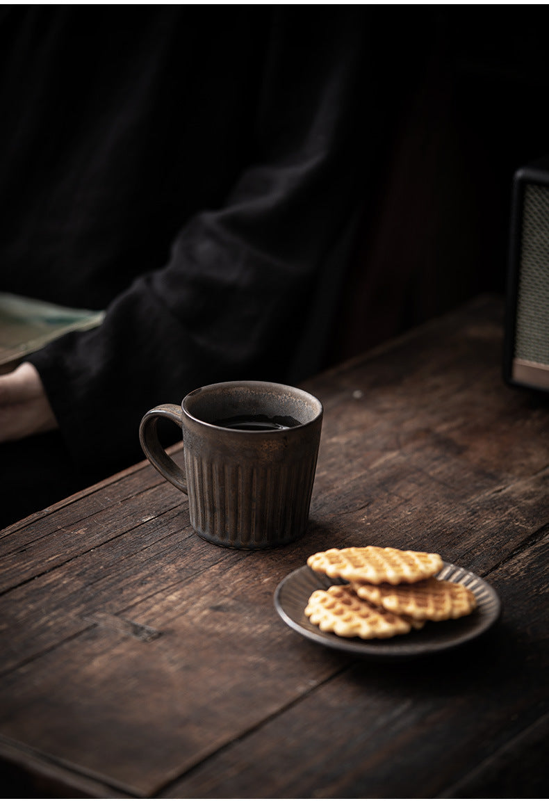 Perfect for tea, coffee, or milk, this versatile piece enhances both casual and formal settings. The sturdy coarse ceramic texture provides a tactile, grounded feel, while the matching saucer adds sophistication and functionality to your tableware collection.