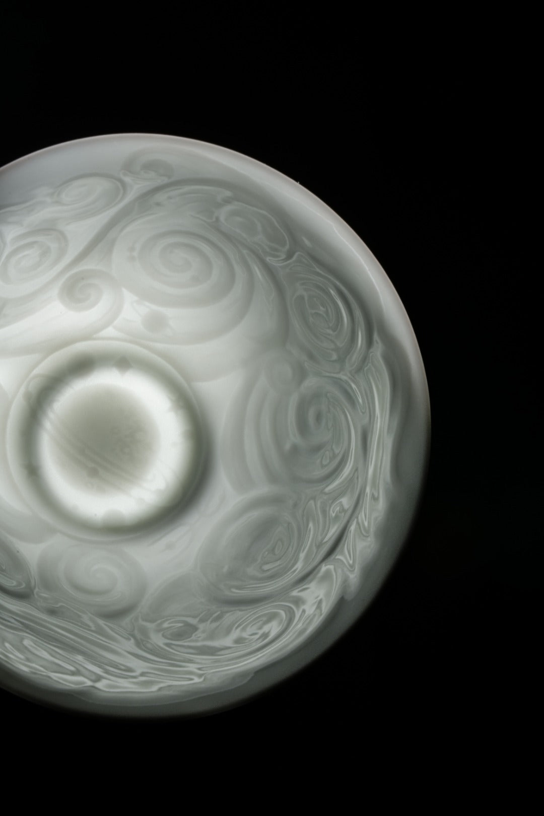 An innovative inner-impressing technique extends cloud-like nebula patterns from the cup wall down toward the base, where they gradually converge into a single planetary form. The visual rhythm moves from diffusion to focus, creating a sense of spatial depth rather than surface decoration. These patterns do not sit atop the porcelain, but emerge subtly from within the body itself, allowing the “starry sky” to evolve from a flat motif into a perceptible, immersive scene. When tea is poured, the surface of the liquor seems to carry drifting galaxies, as though the Milky Way were gently circulating within the cup, turning each sip into a moment of quiet cosmic reflection.