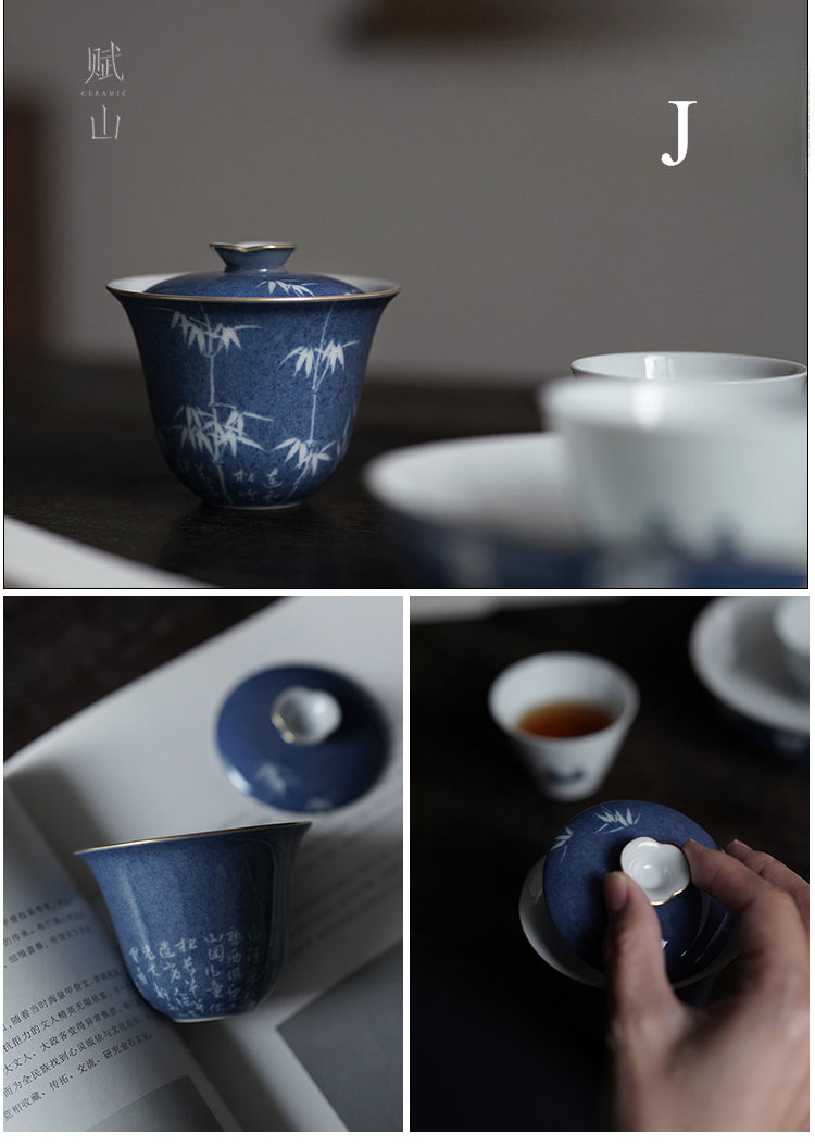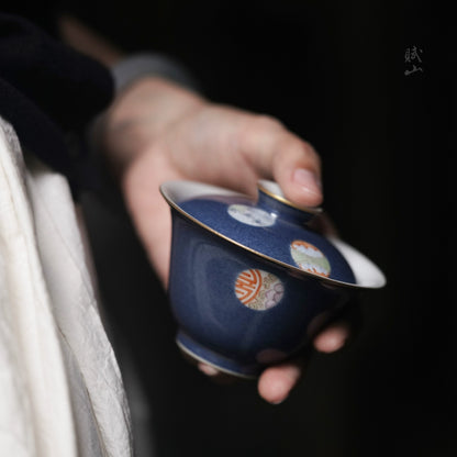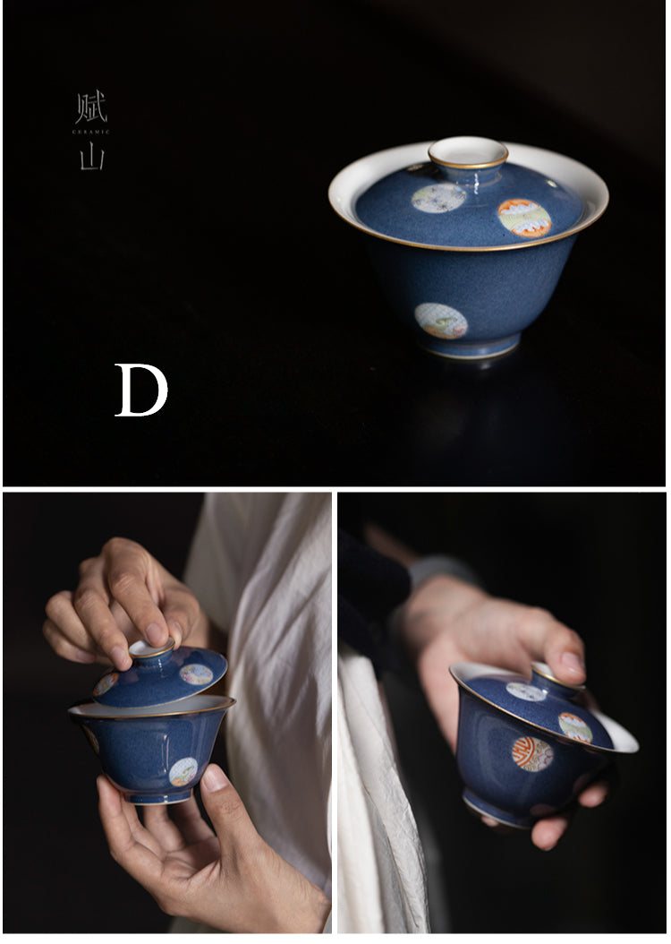 [賦山敘 x Gohobi] Splash-Blue Gaiwan Collection – Single Handmade Jingdezhen Ceramic Gongfu Tea Bowl