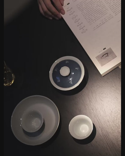 This handcrafted Gaiwan from Jingdezhen features a beautiful splash-blue glaze (洒蓝) and classic Chinese form, perfect for Gongfu tea brewing. Each piece is individually handmade and hand-painted, offering a unique expression of traditional craftsmanship.