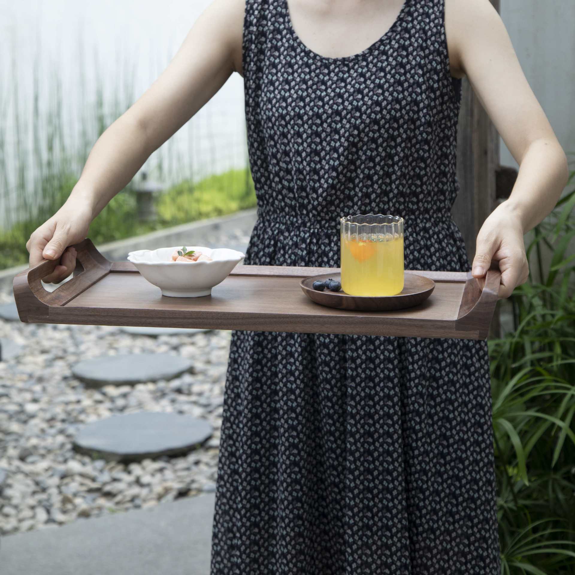 The Gohobi Black Walnut Solid Wood Tea Tray is a versatile and elegant piece designed for both tea ceremony and daily use. Crafted from premium black walnut, this tray showcases a natural wood grain with a warm, refined finish. The double-handle design allows it to function as both a traditional tea tray and a portable serving tray, offering both practicality and aesthetic charm.