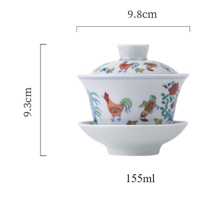 [Gohobi Gallery] Jingdezhen official ceramic hand-painted Chicken Gaiwan and Cup Set