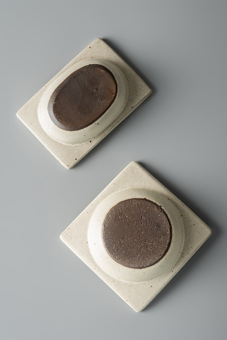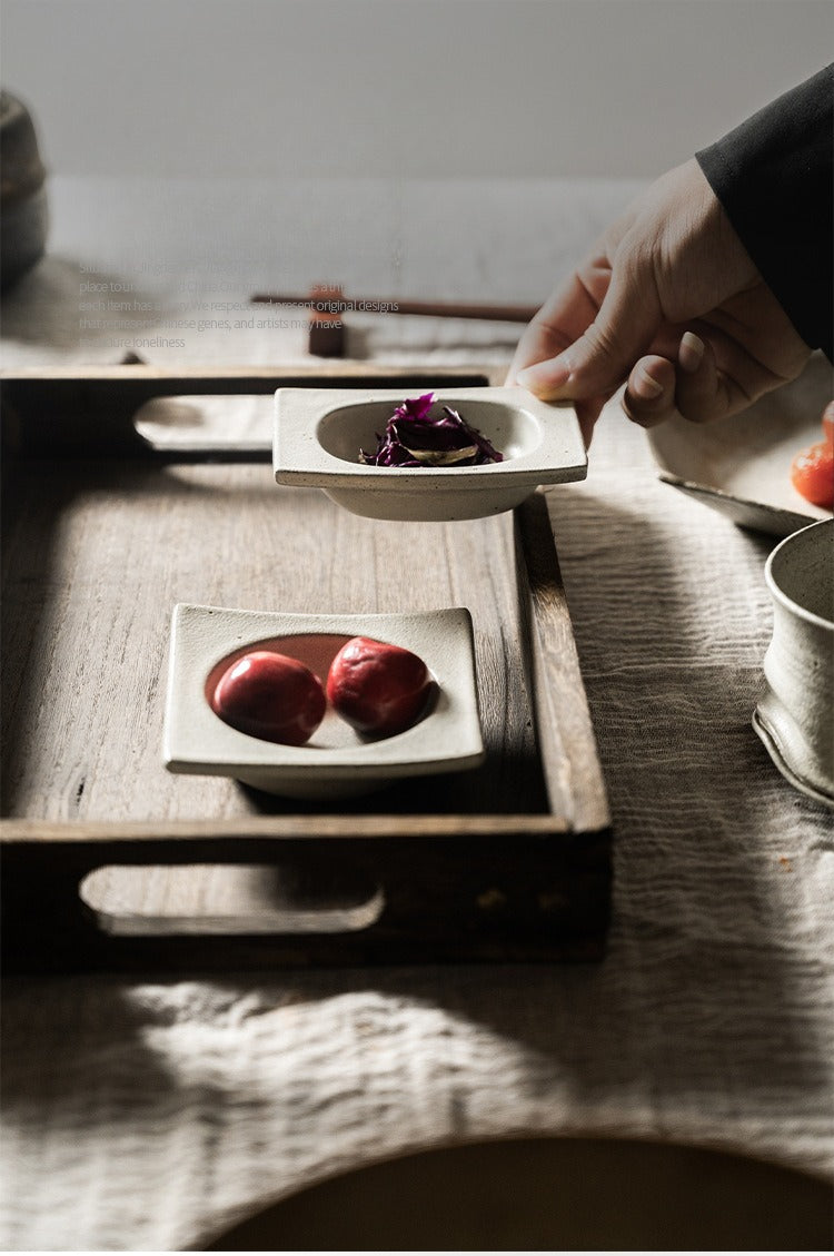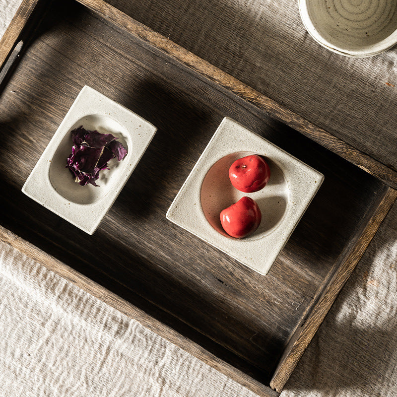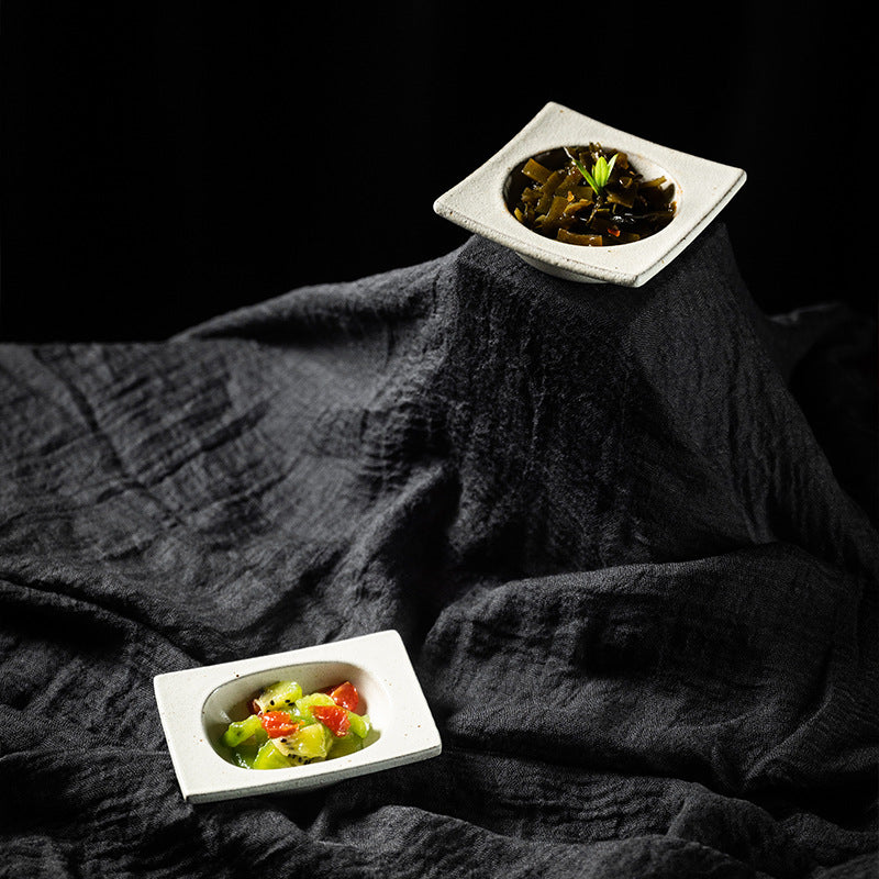 Gohobi Japanese Vintage Jingdezhen Coarse Pottery Square Condiment Dish