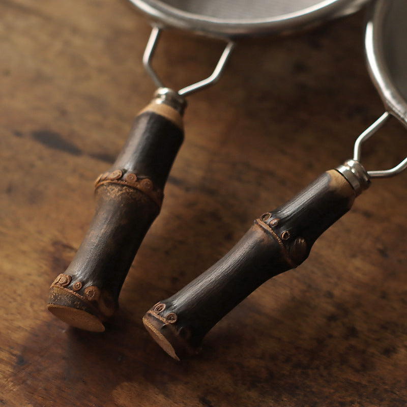 Gohobi New Purple Bamboo Handle Stainless Steel Tea Strainer