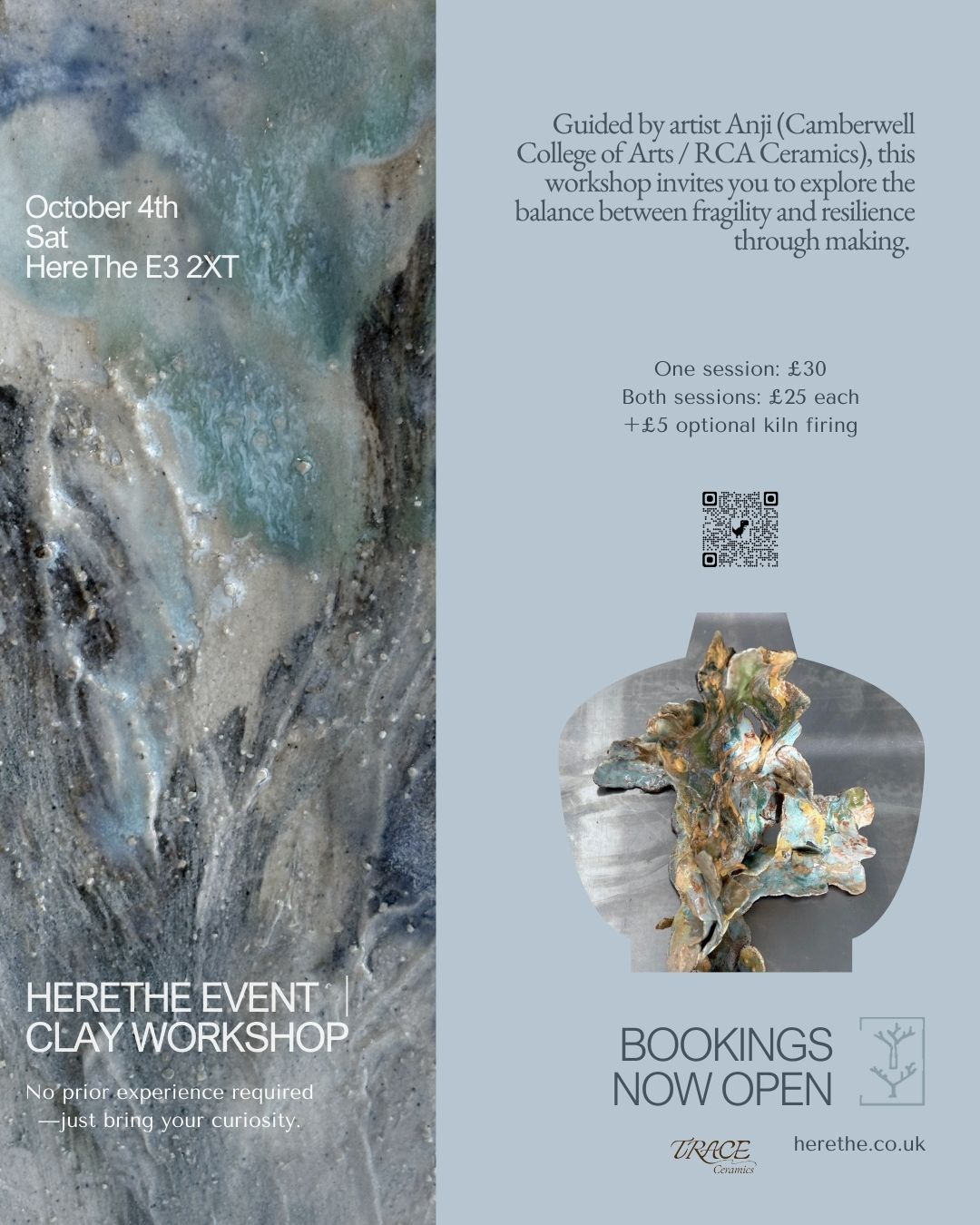 Guided by Anyi Ji (Camberwell College of Arts / RCA Ceramics), you’ll explore clay as a space for play, reflection, and creativity. Her practice is inspired by the philosophy of impermanence—finding beauty in the fragile and the unexpected.